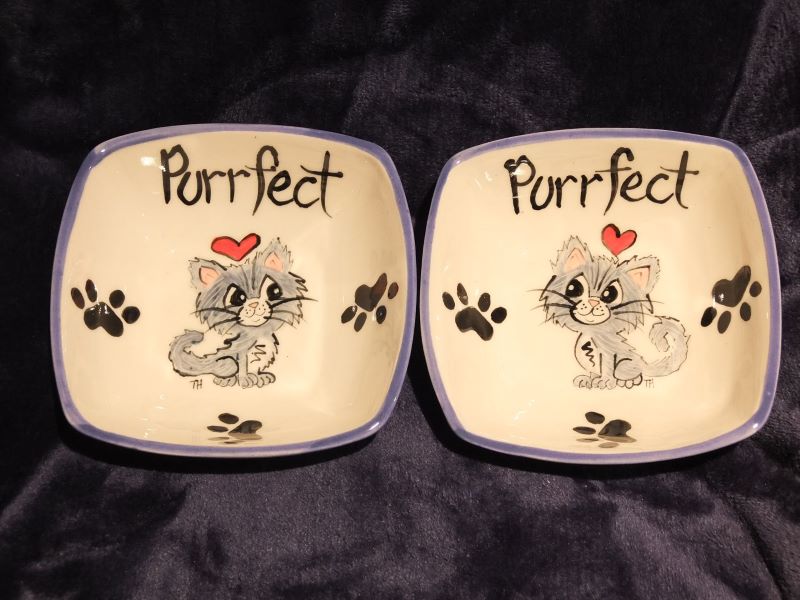Set of 2 Medium Square Cat Bowls
