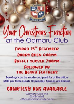 XMAS AT THE CLUB: still a few tables left, we can look at making tables up if you are struggling to make numbers up to 10. Please all enquires to the Office 4346163 ext. 3
